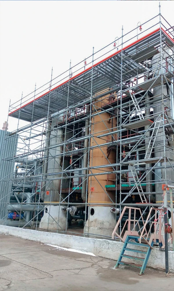 35 164На данном объекте компания «ПОЛАТИ» выполнила следующие работы: монтаж строительных лесов для доступа к оборудованию и трубопроводам, демонтаж изоляции с последующей зачисткой трубопроводов и технологических узлов, монтаж нового теплоизоляционного покрытия. Работы велись на сложных участках, включая высотные зоны и труднодоступные объёмы. Процесс был организован с участием большого количества специалистов, задействованных одновременно на разных этапах.