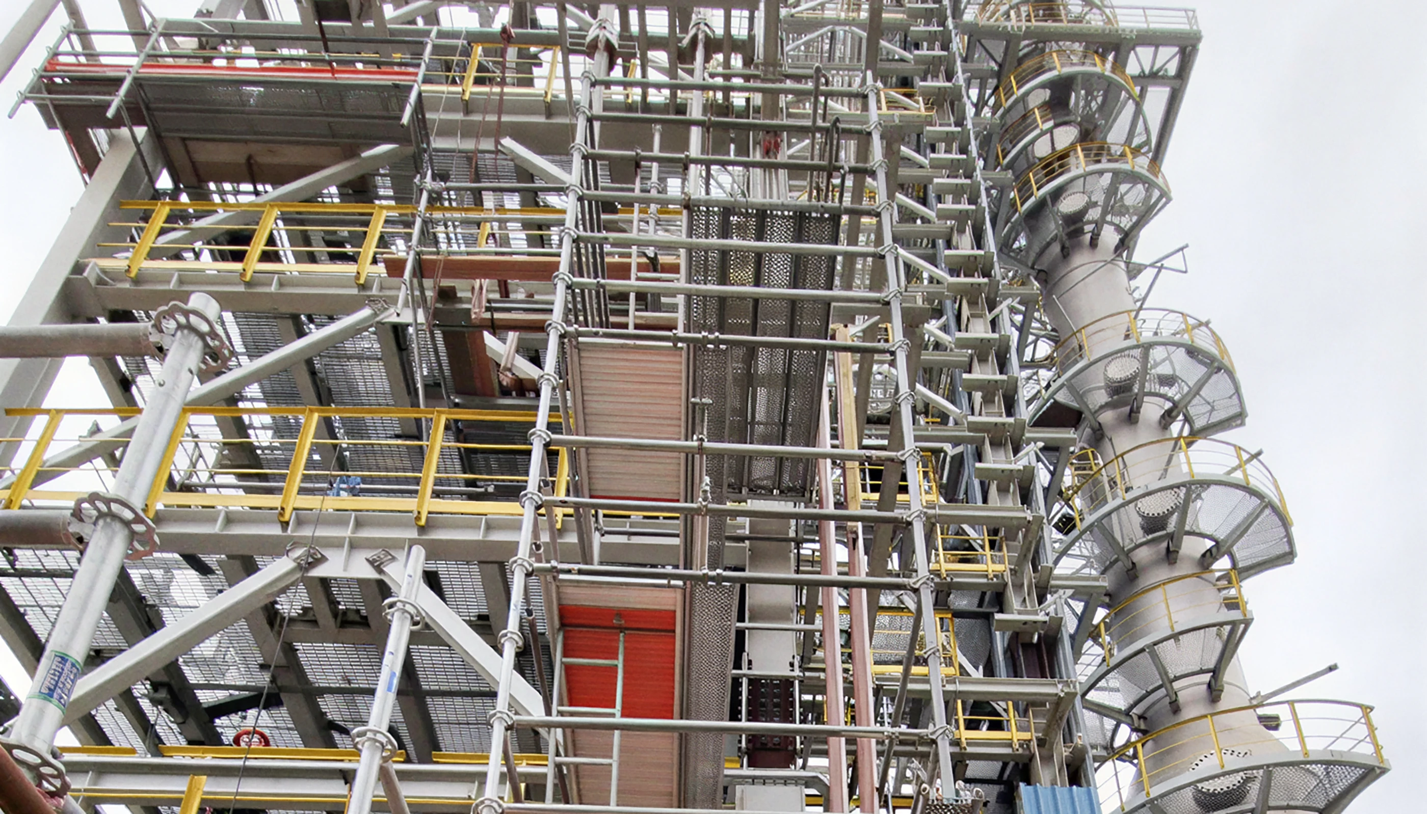 На данном объекте компания «ПОЛАТИ» выполнила полный комплекс работ по монтажу и демонтажу строительных лесов (системы ТХЛ и клиновые конструкции) для обеспечения доступа к технологическому оборудованию и строительным конструкциям. Работы производились в условиях ограниченного пространства и на высотных отметках, что потребовало привлечения высококвалифицированных промышленных альпинистов.