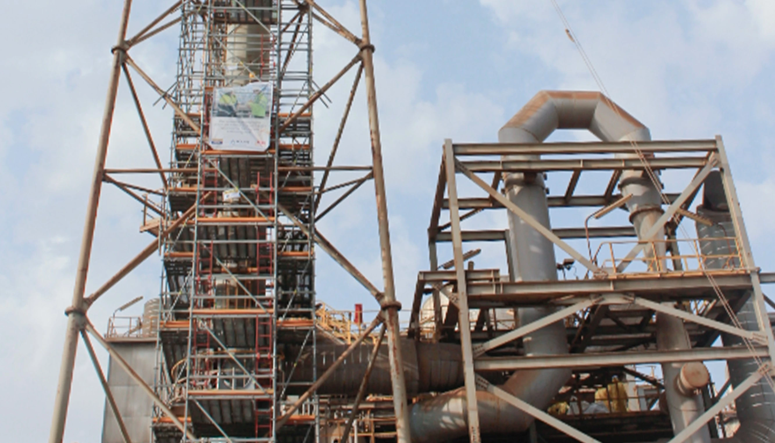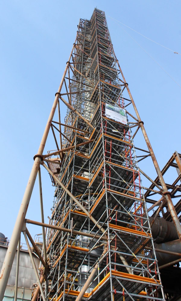 Компания «ПОЛАТИ» выполнила монтаж и демонтаж строительных лесов на участке АА завода Tasnee для проведения инспекции и последующего ремонта вертикального сепаратора (Ø1,5 м, высота 60 м). Проект усложнялся множеством конструктивных помех — мачтами, площадками, лестницами и трубопроводами.