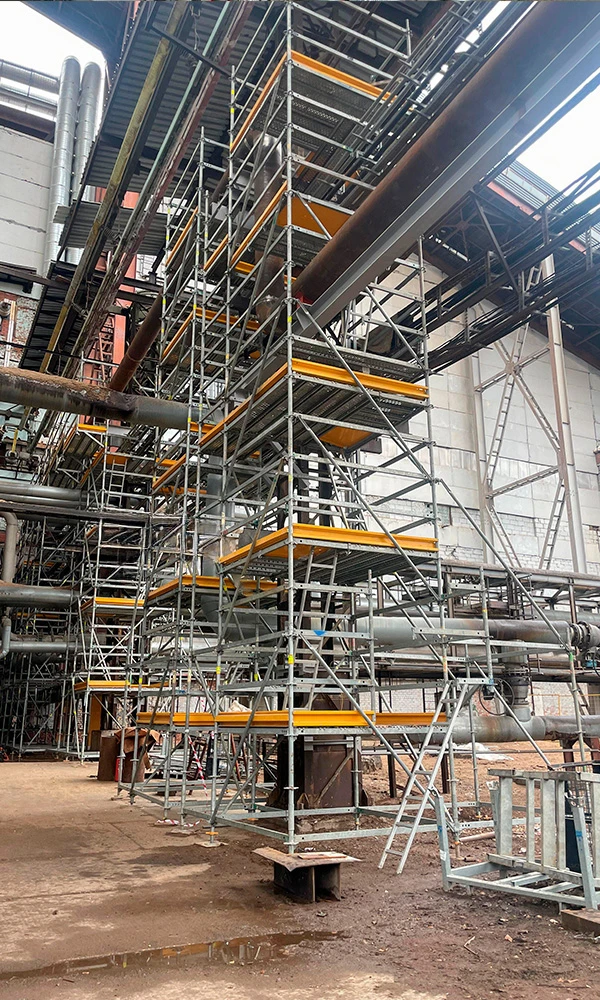 7 676Компания «ПОЛАТИ» на данном объекте выполняла работы внутри котла, в условиях ограниченного доступа и повышенной сложности. Монтаж строительных лесов выполнялся в замкнутом пространстве, с подачей материалов через технологический люк диаметром всего 50 см.