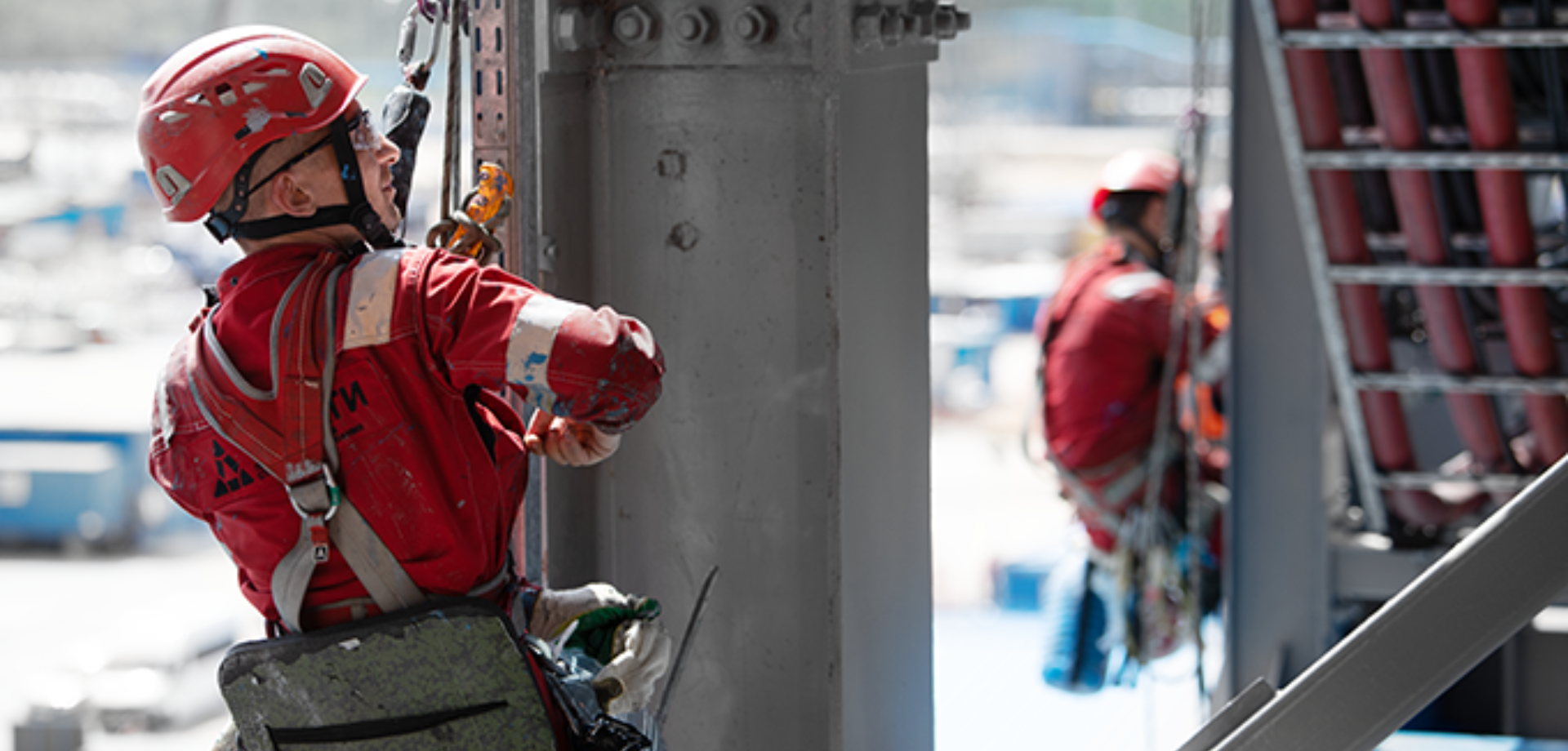 Промышленные альпинисты компании «ПОЛАТИ» выполняют работу в срок с соблюдением всех норм охраны в соответствии с приказом N 782н.